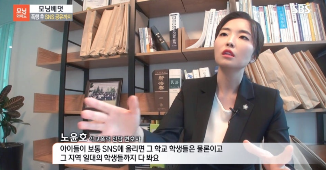 她曾在位于首尔市的办公室接待了一位母亲,她上中学的孩子被同学叫到天台死命殴打,连身上的厚毛衣都被抢走了。